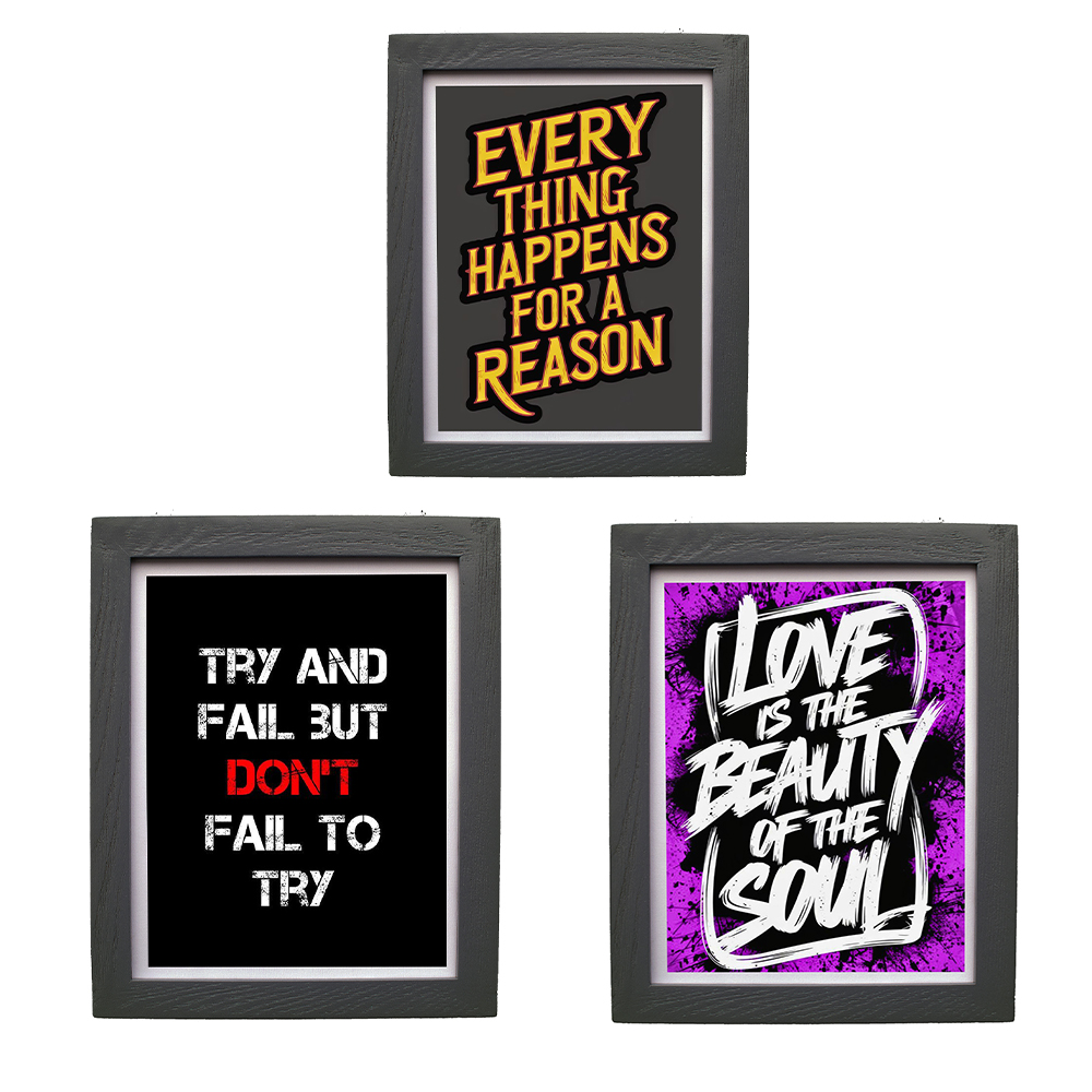 CRAFT N CREATIONS Inspirational Wall Art Prints, Motivational Quotes with Black Frame, 30 x 25 cm, Set of 3