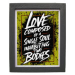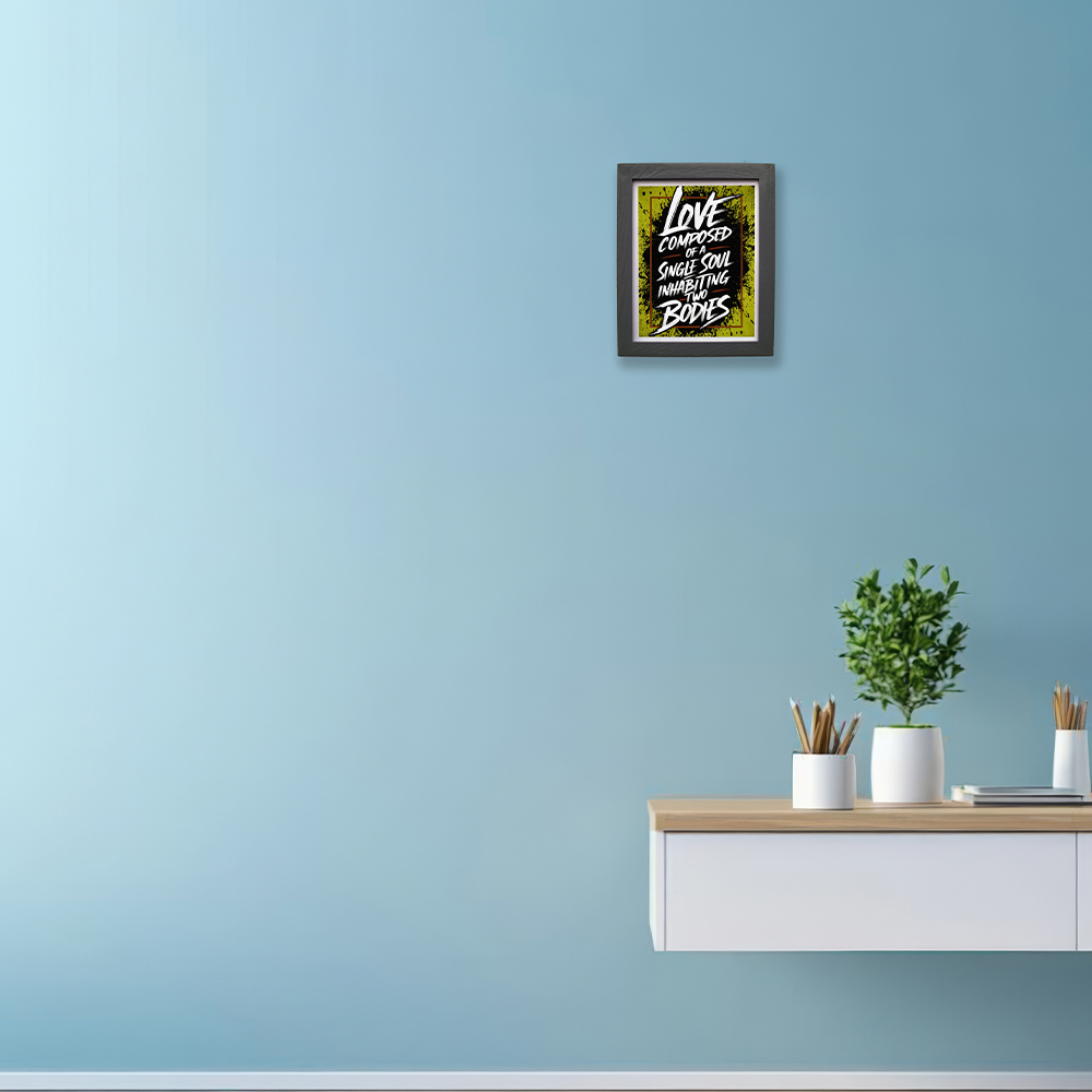 Transform your living space with this striking motivational wall art print from CRAFT N CREATIONS. The dynamic typographic design features bold white lettering against a vibrant chartreuse background with artistic splatter effects, beautifully framed in a sleek black wooden frame. Measuring 30 x 25 centimetres, this medium-sized vertical piece makes a powerful statement in any room. The artwork combines mixed media with metallic gold foil accents, creating an eye-catching contrast that adds depth and sophistication. The print is produced on high-quality metallic paper, enhancing the visual impact of the design. Perfect for modern interiors, this contemporary piece draws inspiration from Japanese aesthetic sensibilities while delivering a profound message about love. The durable frame and professional mounting make it ready to hang immediately upon arrival. Ideal for your living room or any space where you want to create a focal point with both artistic and inspirational value. Each piece comes securely packaged in a protective box to ensure safe delivery.