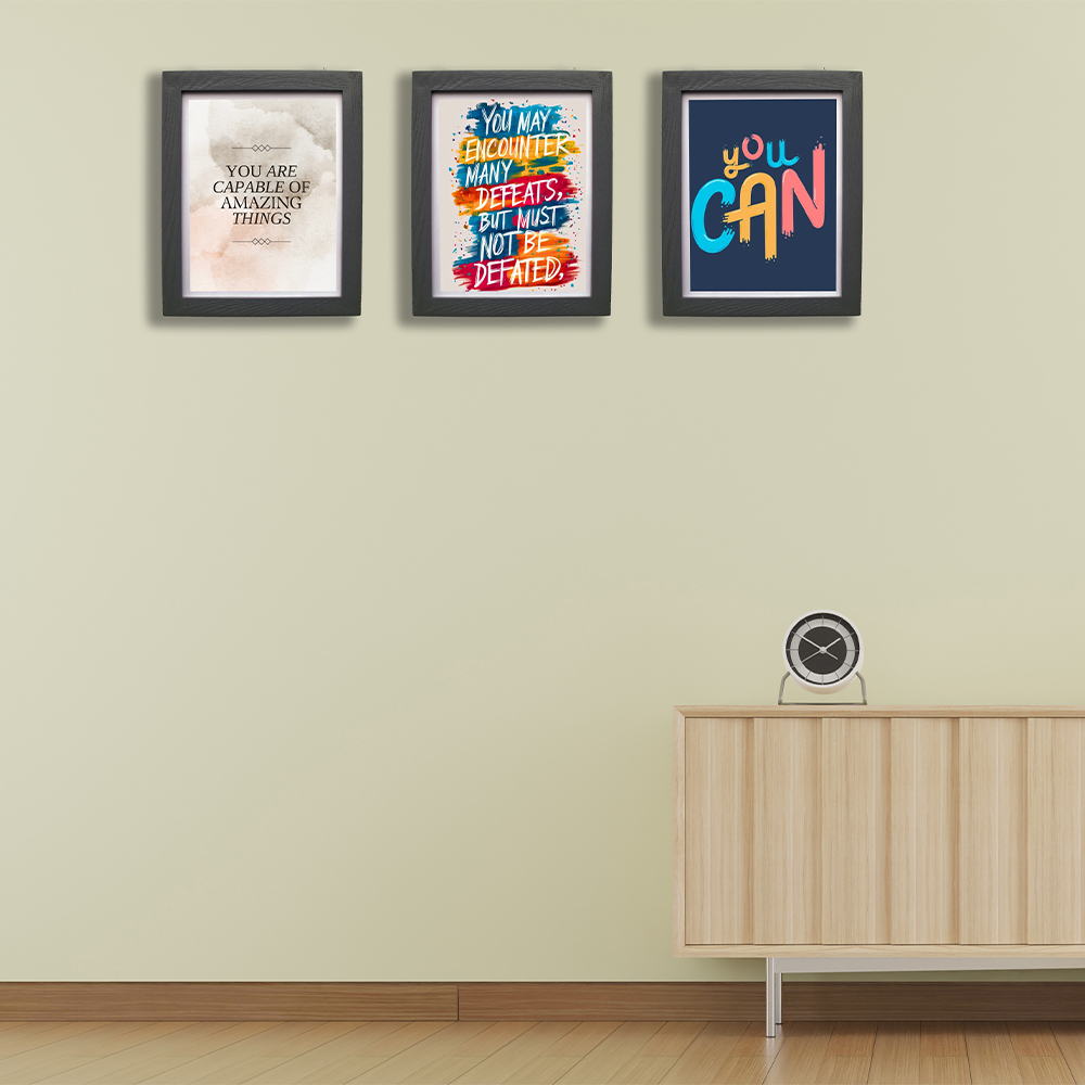 CRAFT N CREATIONS Motivational Wall Art Posters, Set of 3, Black Frame, 30 x 25 cm, Inspirational Quotes 1035