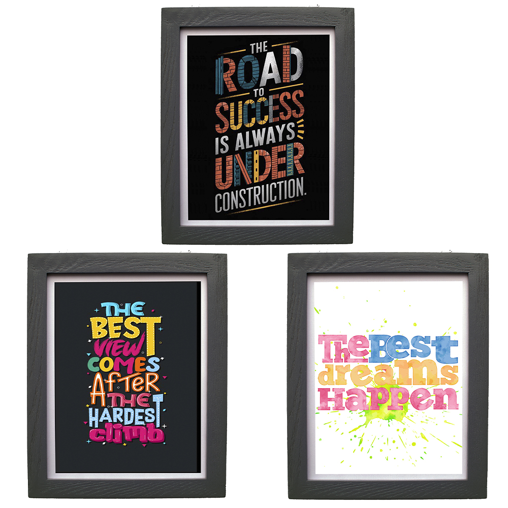 CRAFT N CREATIONS Motivational Wall Art Posters, Set of 3, Black Frame, 30 x 25 cm, Inspirational Quotes for Living Room 1034