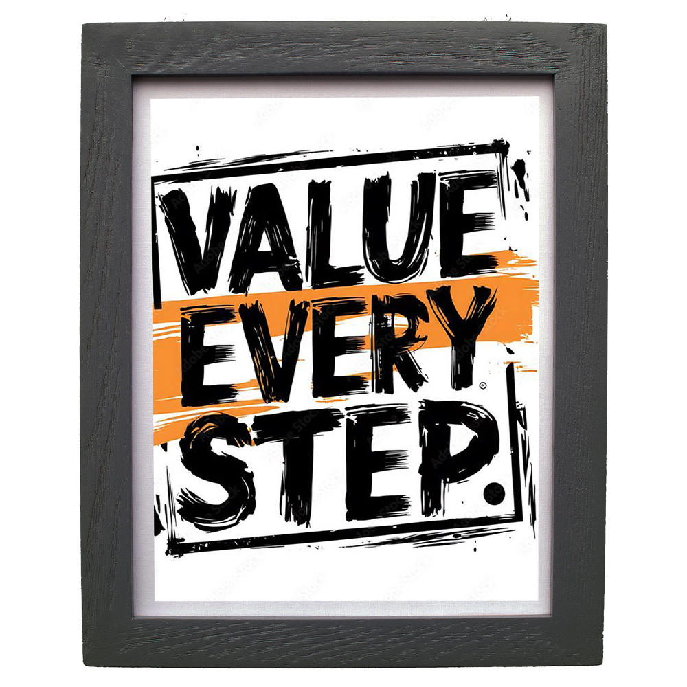 CRAFT N CREATIONS Value Every Step Motivational Wall Art Print with Black Frame, 30 x 25 cm 1059