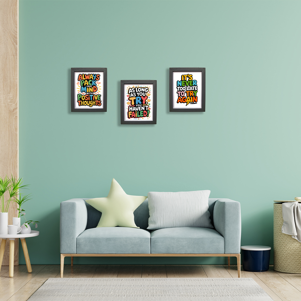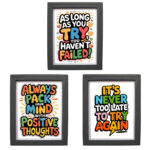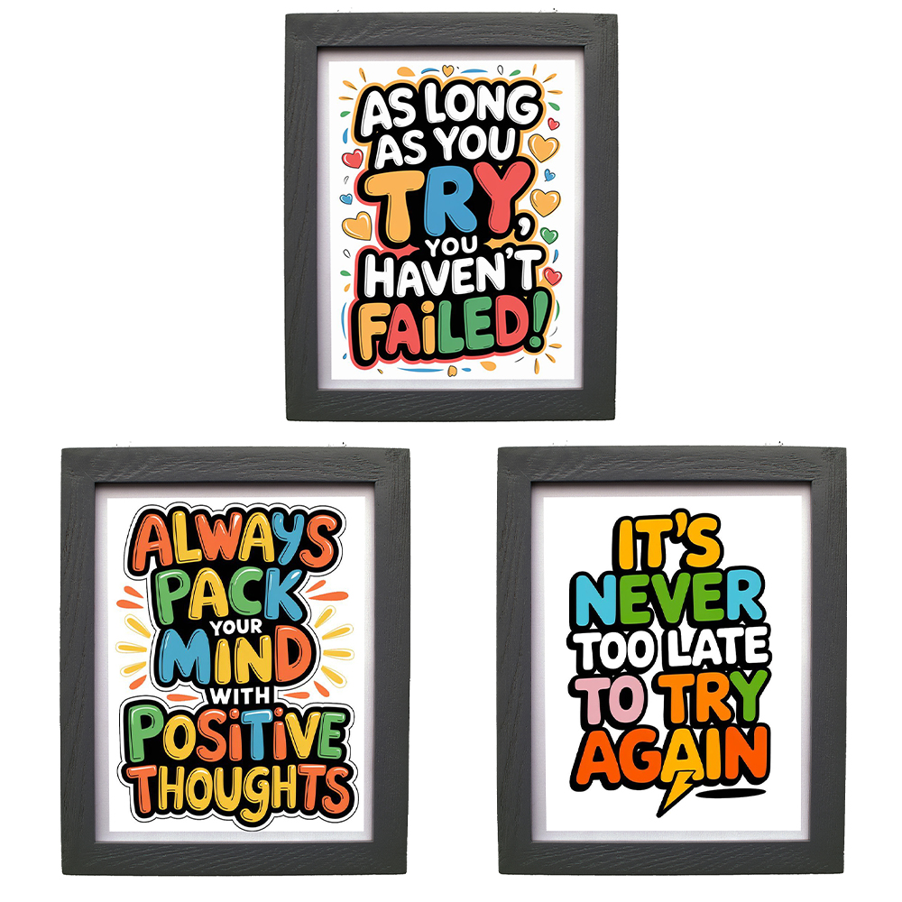 - INSPIRATIONAL SET: Collection of three vibrant motivational quotes artistically designed with colorful typography in black frames