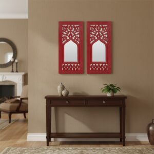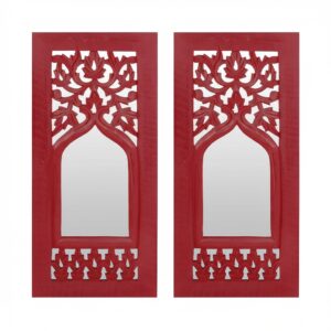 Craft N Creatiopns Decorative Wooden Jharokha Mirror Wall Panels, Traditional Indian Style Carved Design, Set of 2 in 17 x 7 inches