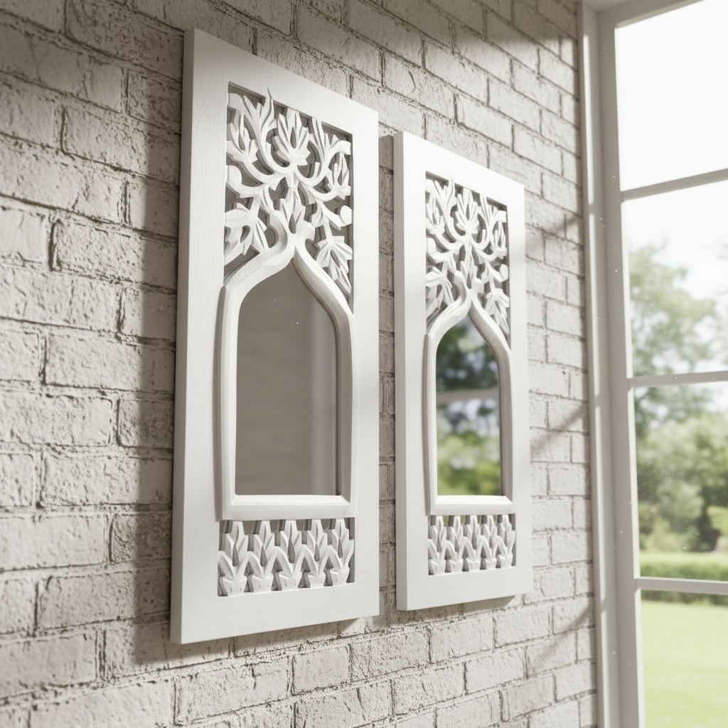 Be the first to review “Craft N Creatiopns Decorative Wooden Jharokha Mirror Wall Panels, Traditional Indian Style Carved Design, Set of 2 in 17 x 7 inches”